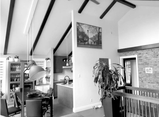 La reprise des portes existantes façon "porte atelier" apporte du caractère à la pièce.